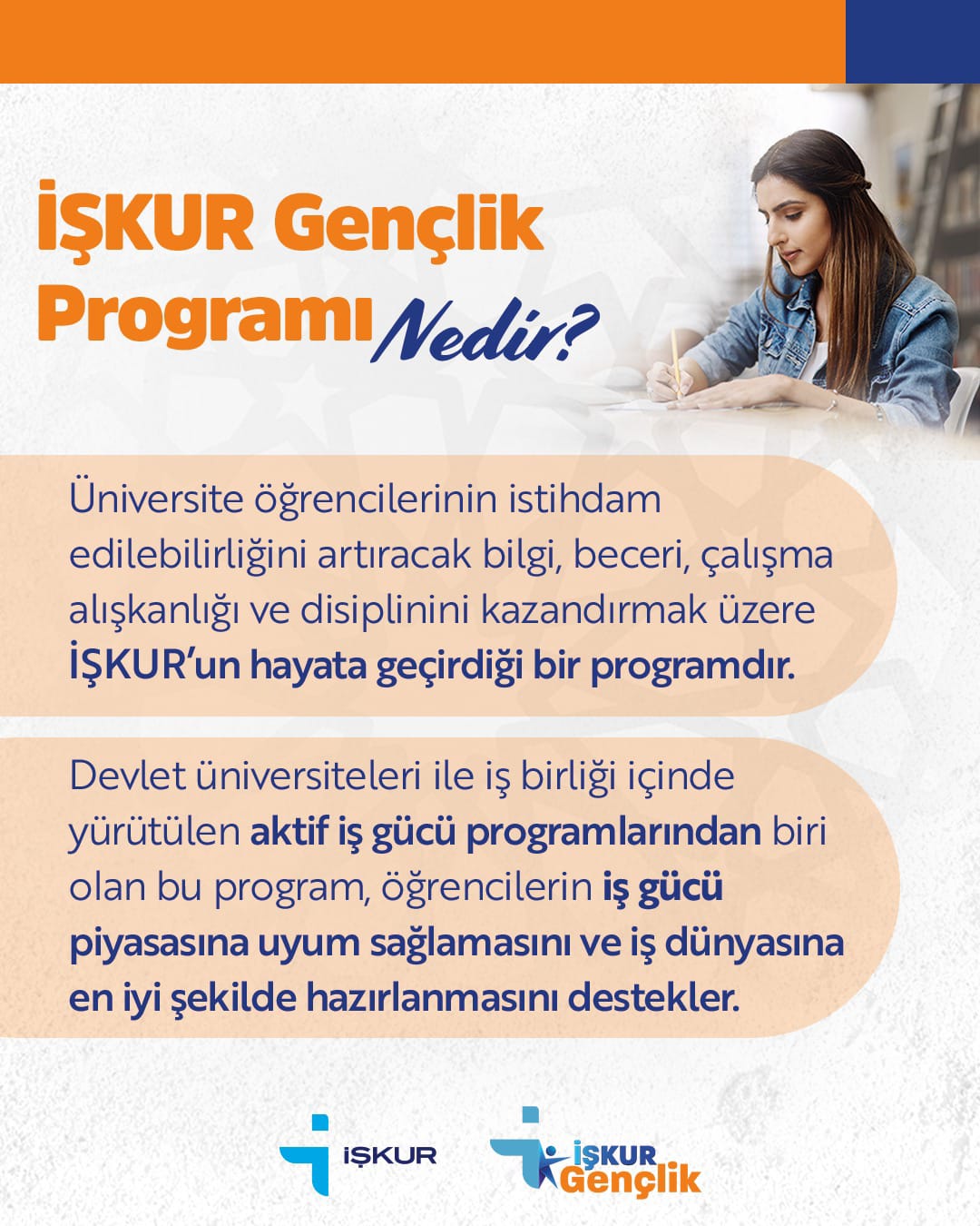 İŞKUR Gençlik Programı kapsamında bu yıl 444 öğrencimiz, Üniversitemizde istihdam edilecektir. Kura ile belirlenecek programa başvurular 20-24 Ekim 2025 tarihleri arasında İŞKUR portalı üzerinden yapılacaktır.